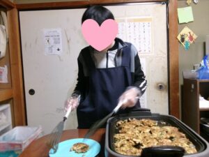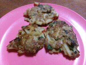熱したホットプレートで両面がきつね色になるまで焼いて、お皿に取り分けたら・・・