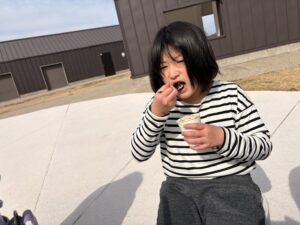 (今日は出掛けるため、おやつのチョコ入り蒸しパンはスタッフが作りました。ご了承下さい。)