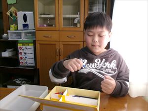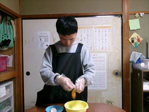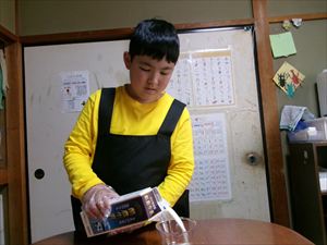 はじめに、ホットケーキミックス、牛乳を計量し、卵を割ります!