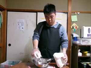 次に、計量した材料を混ぜていきます!