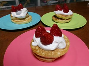 最後に、お好みで生クリームといちごをトッピングしたら【ホットケーキ🥞】の出来上がり💕
