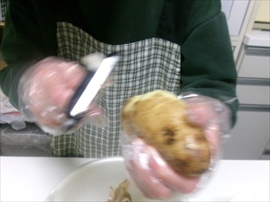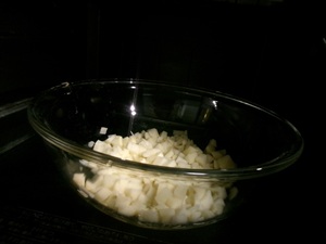 じゃがいもの皮を向いて切り、レンジで加熱したら・・