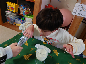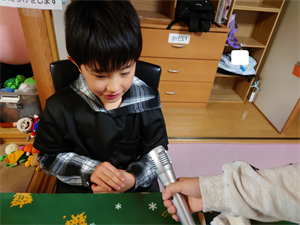 「遊べるよ」と伝えると、「何して遊ぶ?」と相談していました。