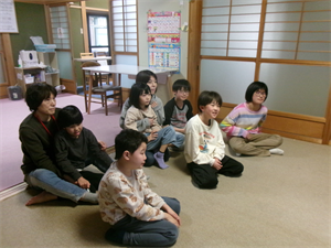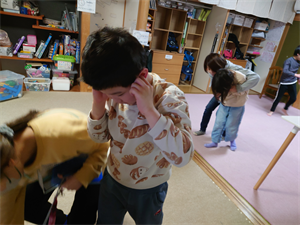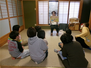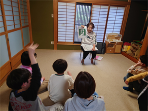 まずは、Y先生から紙芝居と避難訓練で気を付ける事のお話しをしてから