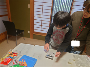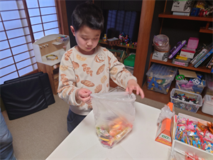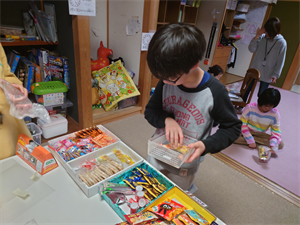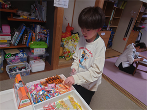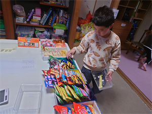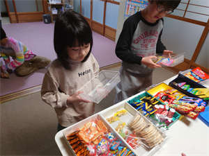 次は、おやつの時間です。今日は「駄菓子屋さん」