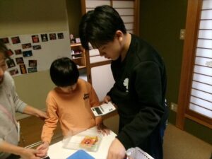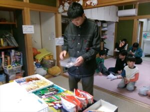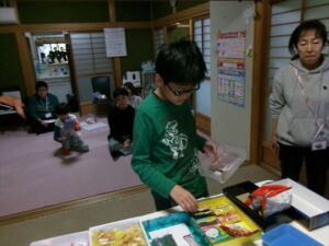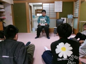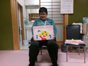 まずは紙芝居【じしんのときのおやくそく】を聞きます。