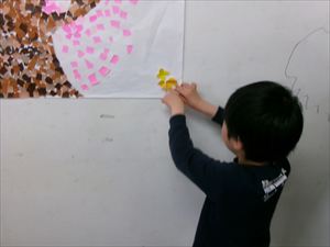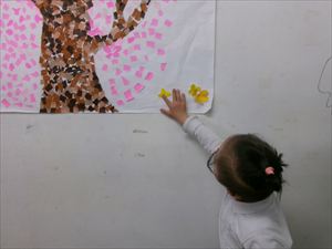 ちぎり絵の桜も満開になって春らしくなってきましたね🦋
