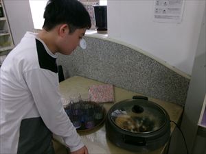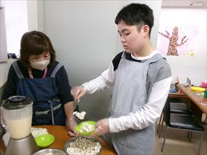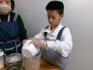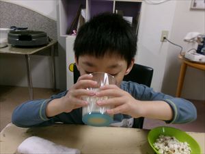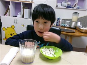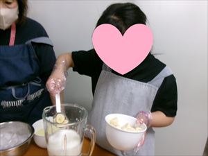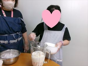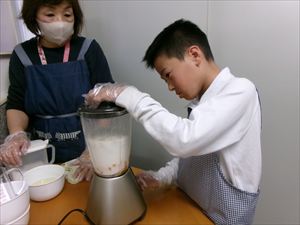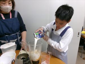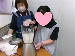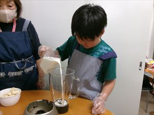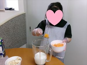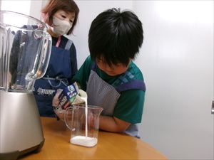 ミキサーに牛乳を入れて、スイッチオン(^^)/