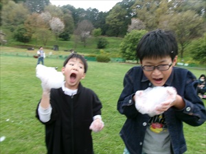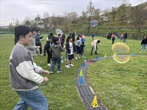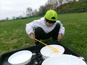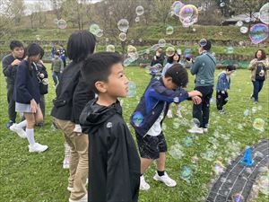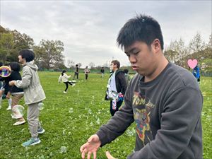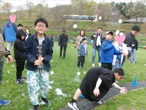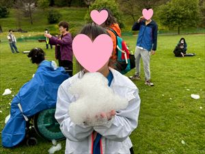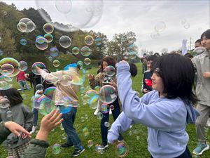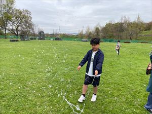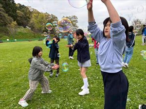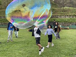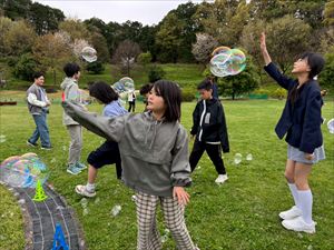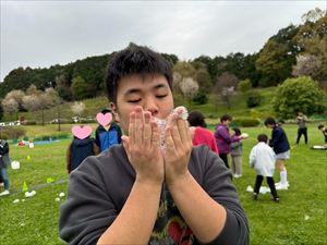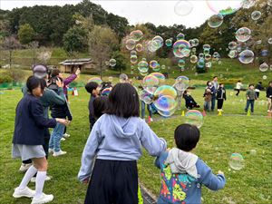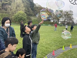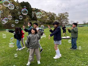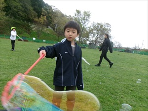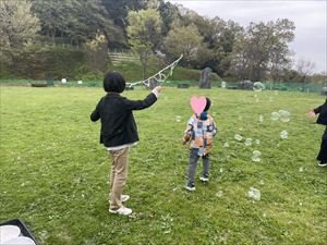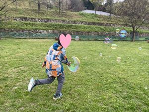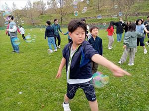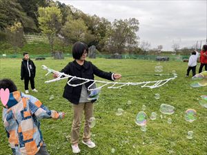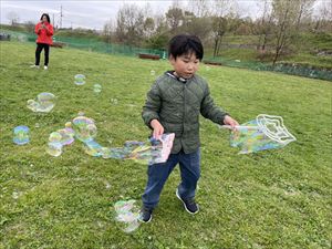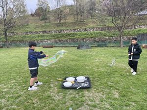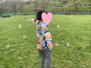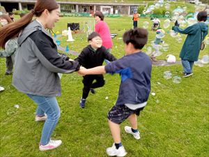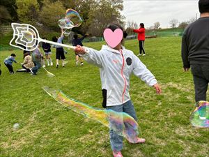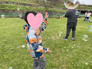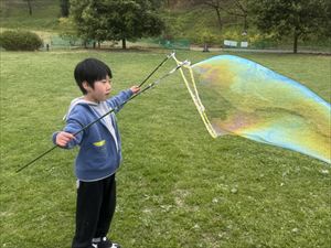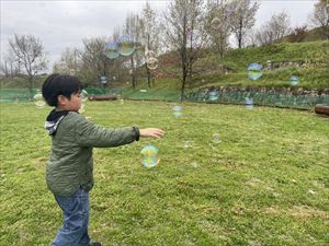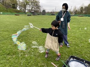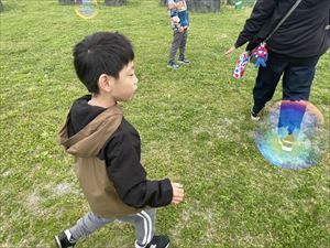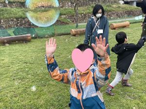 みんなそれぞれの楽しみ方でシャボン玉体験を楽しんでいました(*^^*)
