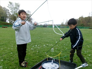 どれだけ大きなシャボン玉を作れるか、どれだけたくさんのシャボン玉を作れるかなど
