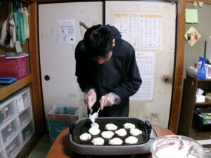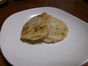 生地ができたらホットプレートを温めて、ごま油で両面しっかり焼いたら・・・