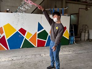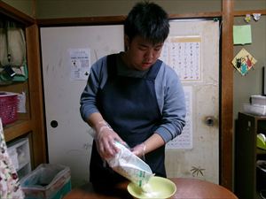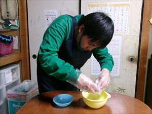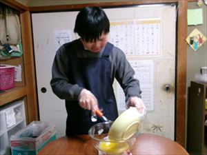 そこにスタッフが薄力粉を加え、ヘラで切るようにさっくりと混ぜ合わせます!