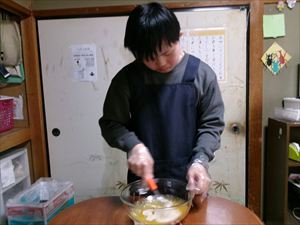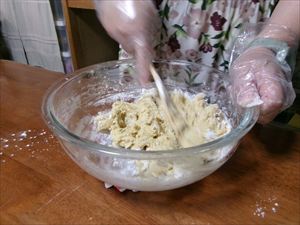 生地が出来上がったら、ラップをし、30分ほど冷蔵庫で寝かせます!