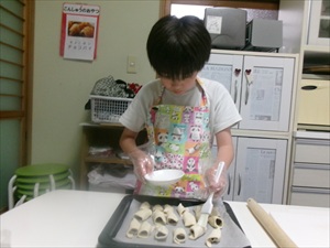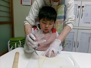 作り方は、パイシートを切って、穴を開け、綿棒でのばして、チョコレートを巻いていくので、手指の微細運動がたくさん盛り込まれているレシピとなっています!
