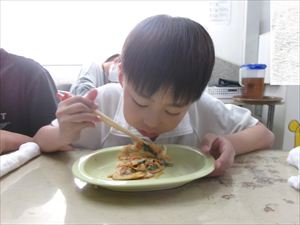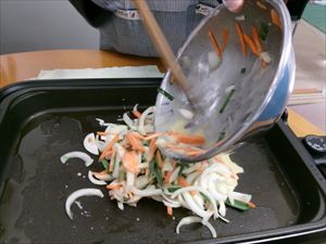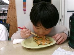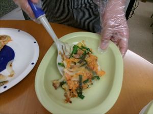 今週のおやつは【野菜たっぷりチヂミ】です。