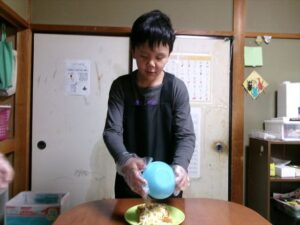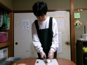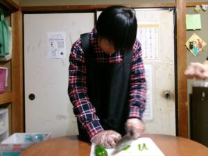 はじめに、具材の玉ねぎ、ピーマン、ウインナーを切っていきます!