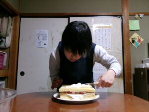 次にスポンジケーキを準備して、下から順に生クリームをぬっていきます😉!