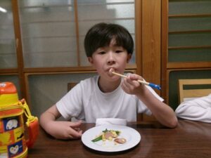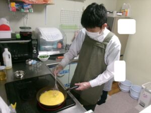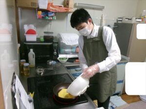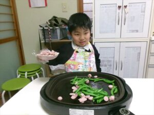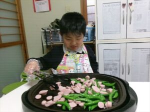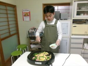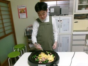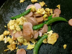 ホットプレートで、具材と調味料を炒め合わせたら~