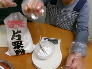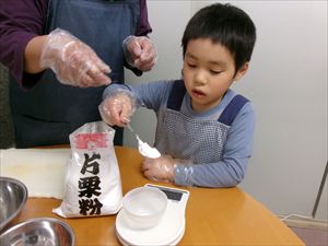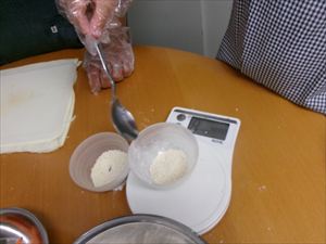 小麦粉などを計量し、生地を作り、