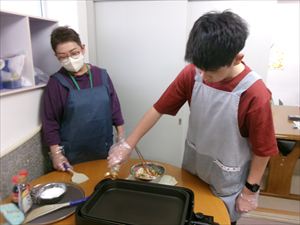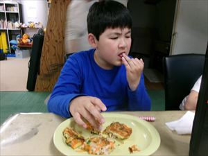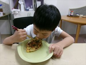 今週のおやつは【野菜たっぷりチヂミ】です。