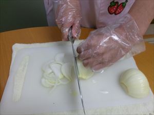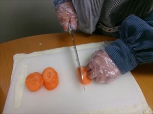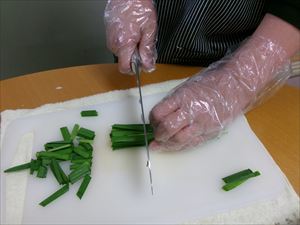 玉ねぎやニラ、にんじんをカットします。