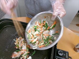 今週のおやつは【野菜たっぷりチヂミ】です。
