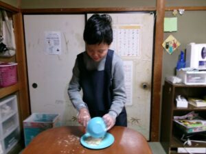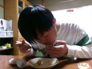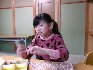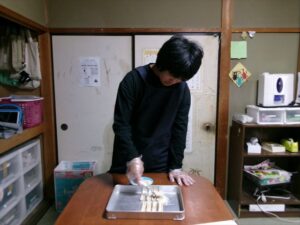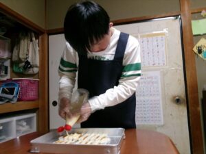 次に、半分に切ったちくわの溝にマヨネーズを入れていきます!