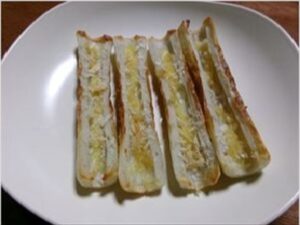 焦げ目がつくまで焼いて、お皿に取り分けをしたら【さくさくちくわ】の完成です💕