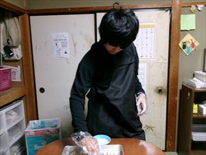 次に、半分に切ったちくわの溝にマヨネーズを入れていきます✨